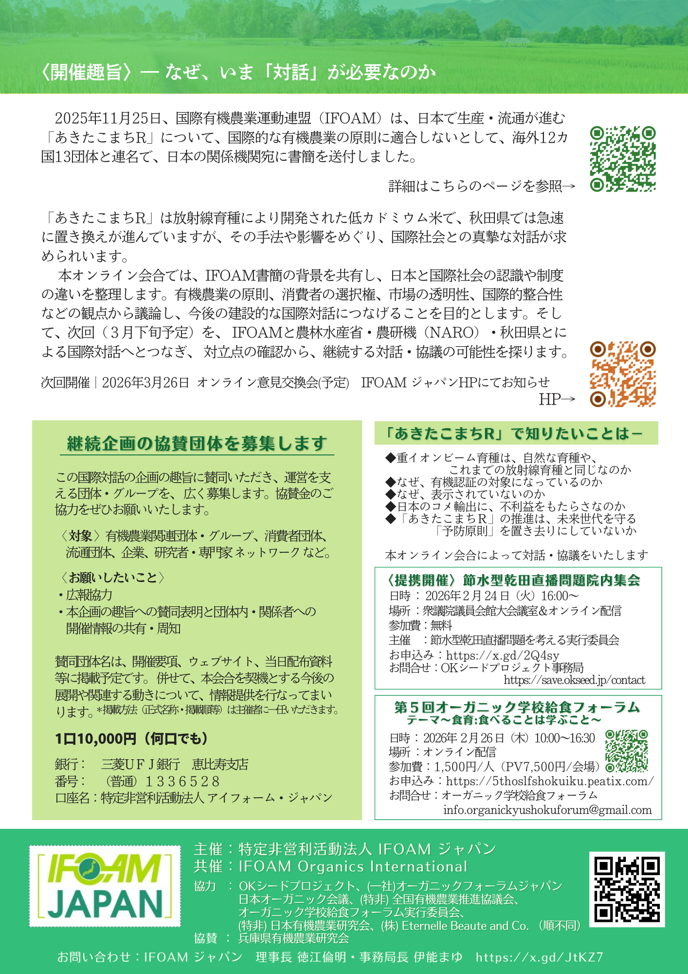 詳 細| https://ifoam-japan.org/2026/01/09/2-27-2-27-「あきたこまち-r」をめぐる国際対話イベントの/