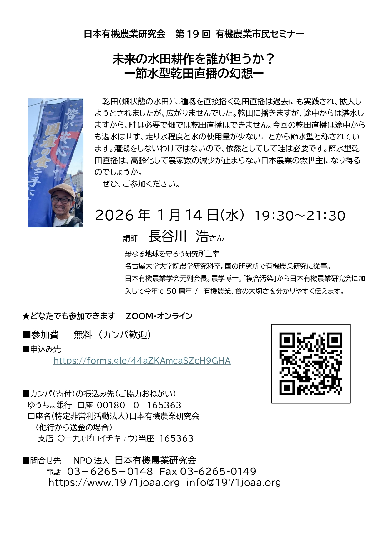 オンライン最近、田植えを省く乾田直播に注目が集まっています。しかし、 […]