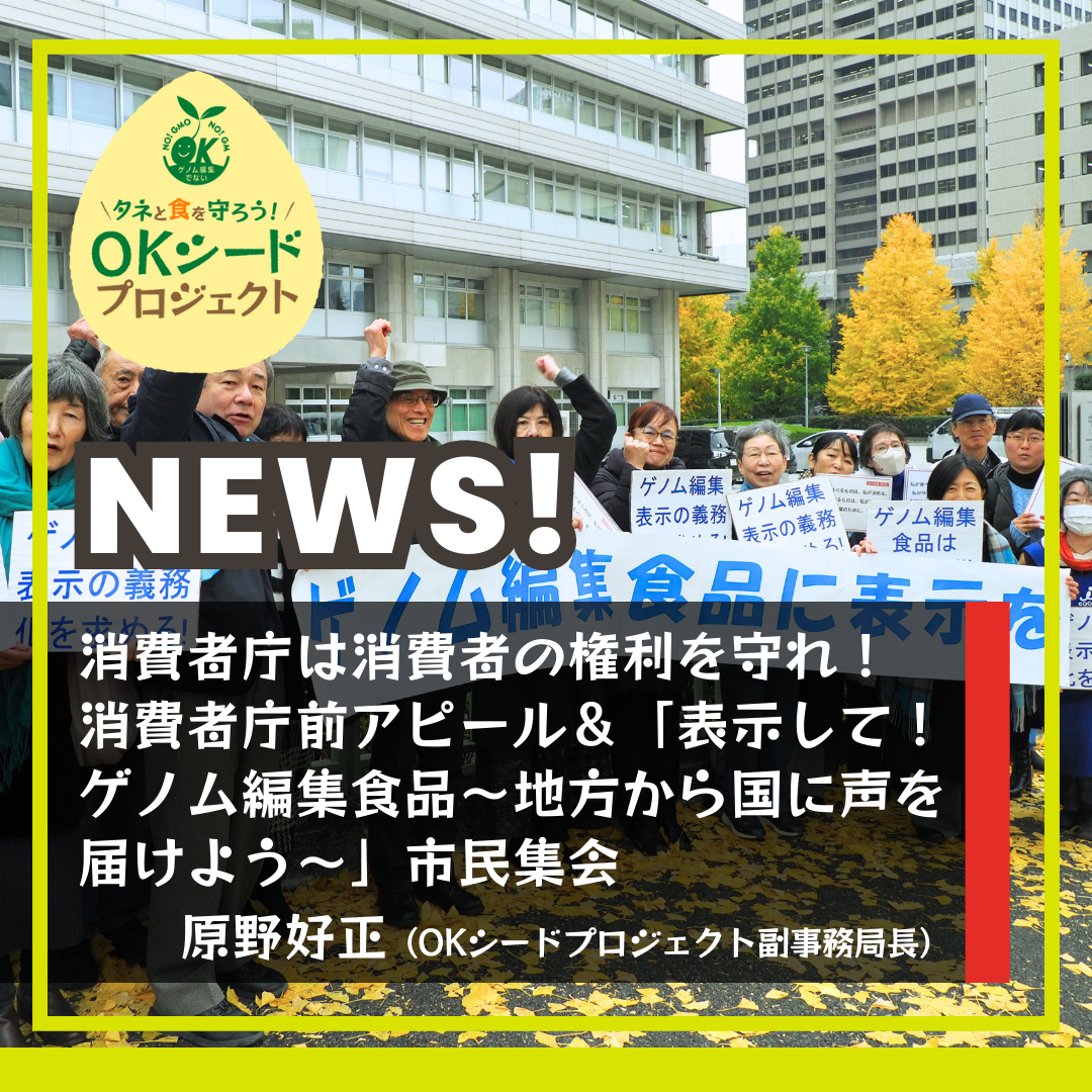 【NEWS!!】消費者庁は消費者の権利を守れ!〜消費者庁前アピール&「表示してゲノム編集食品〜地方から国に声を届けよう〜」市民集会