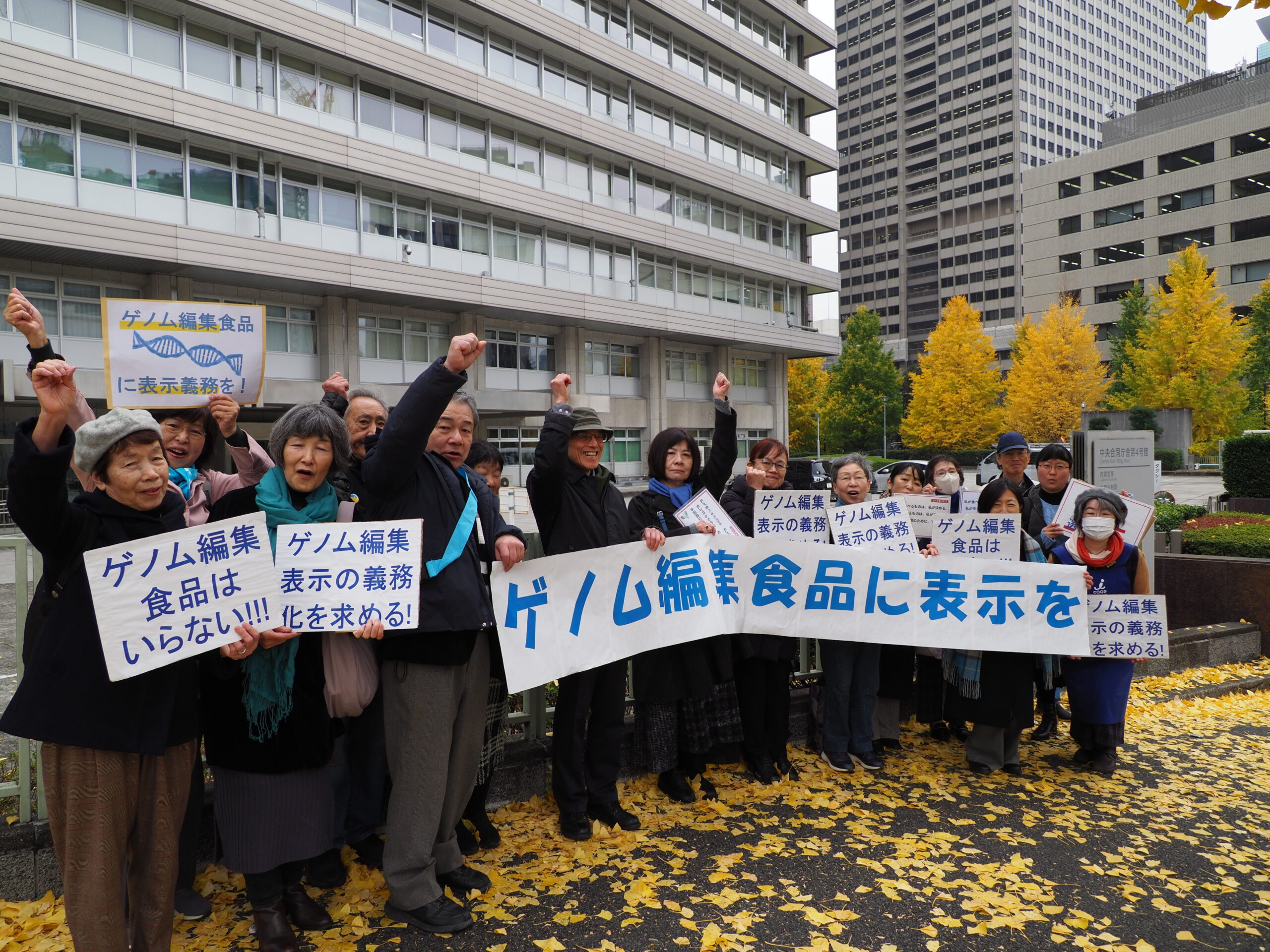 消費者庁前で「ゲノム編集食品の表示義務化」を訴える