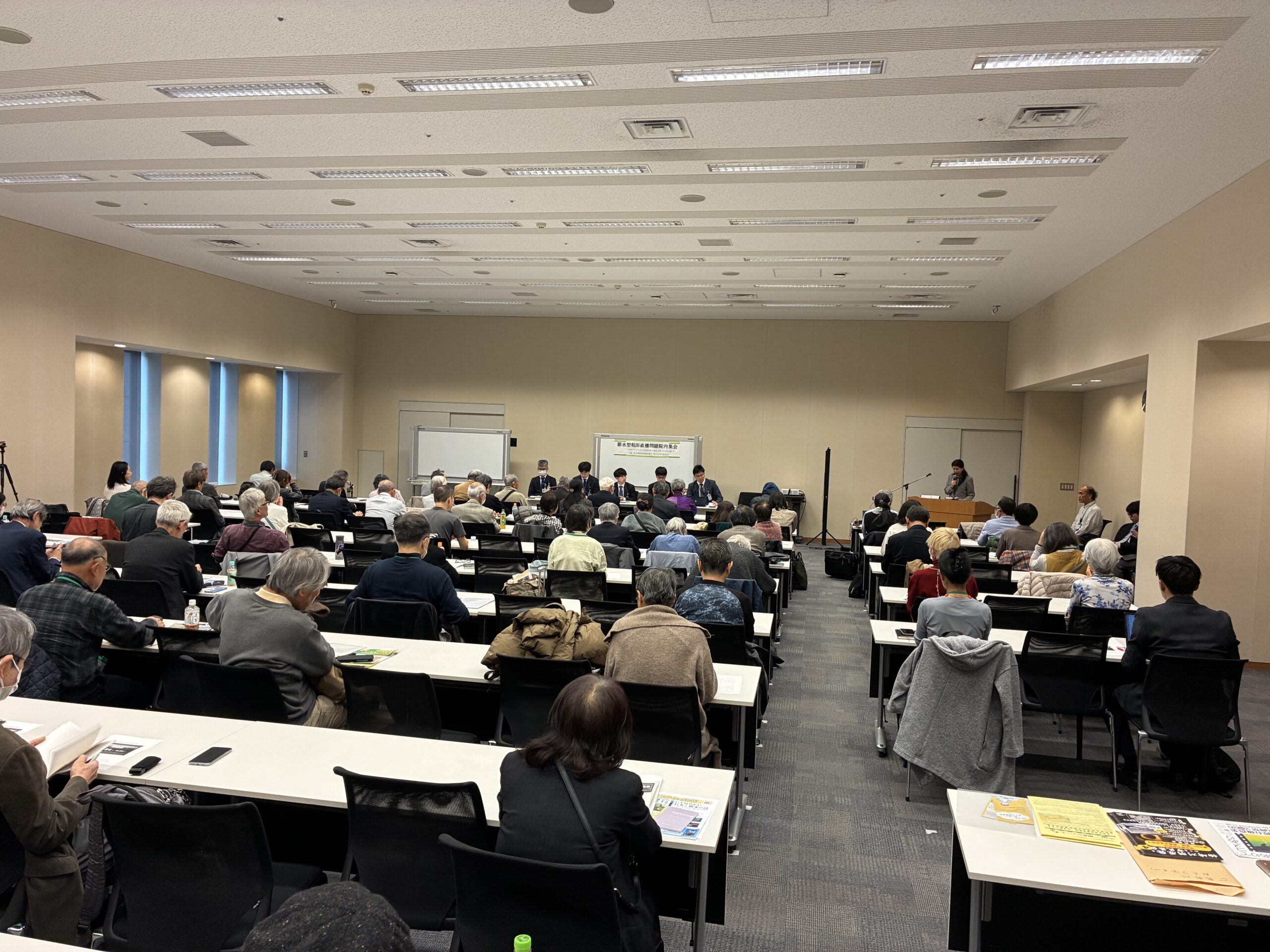 2026224日、衆議院第二議員会館で「節水型乾田直播問題を考える院内集会」が開催されました。主催は節⽔型乾⽥直播問題を考える実⾏委員会(事務局:OKシードプロジェクト)で、会場には約120人が、オンラインでも約340人が参加しました。