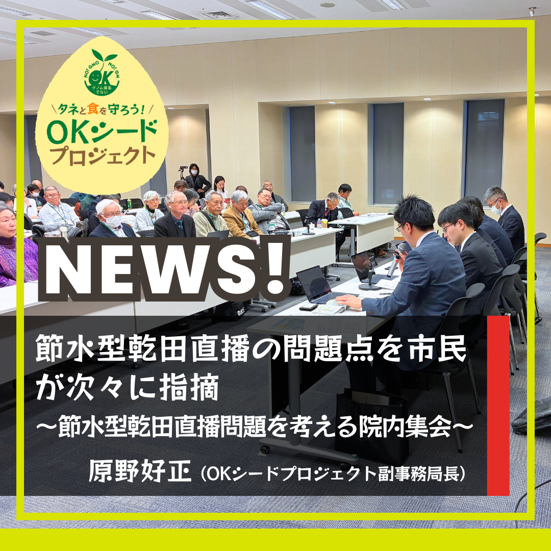 【NEWS!!】節水型乾田直播の問題点を市民が次々に指摘 〜節水型乾田直播問題を考える院内集会〜
