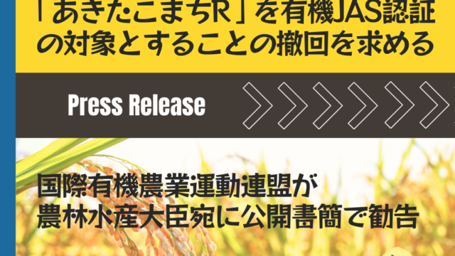お米 プレスリリース:国際有機農業運動連盟が農林水産大臣宛に公開書簡で勧告