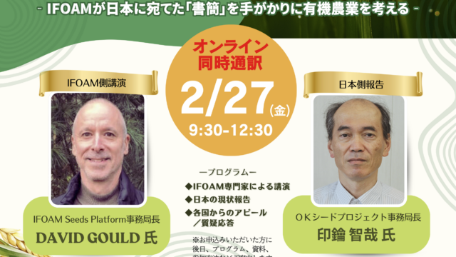 このたび、OKシードプロジェクト事務局長の印鑰智哉(いんやく・ともや)さんをお迎えし、講演会「食と農のあり方で世界が変わる」を開催します。グローバル化、気候変動、環境問題、健康、地域経済。一見バラバラに見えるこれらの課題は「食」と「農」を起...