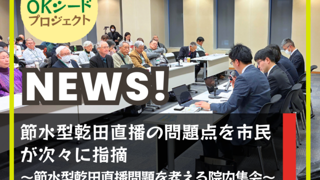2026年2月24日、衆議院第二議員会館で「節水型乾田直播問題を考える院内集会」が開催されました。主催は節⽔型乾⽥直播問題を考える実⾏委員会(事務局:OKシードプロジェクト)で、会場には約120人が、オンラインでも約340人が参加しました。...