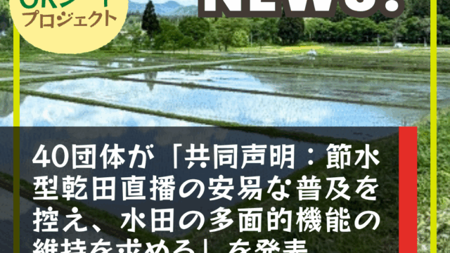 NEWS!! 【NEWS!!】40団体が「共同声明:節水型乾田直播の安易な普及を控え、水田の多面的機能の維持を求める」を発表